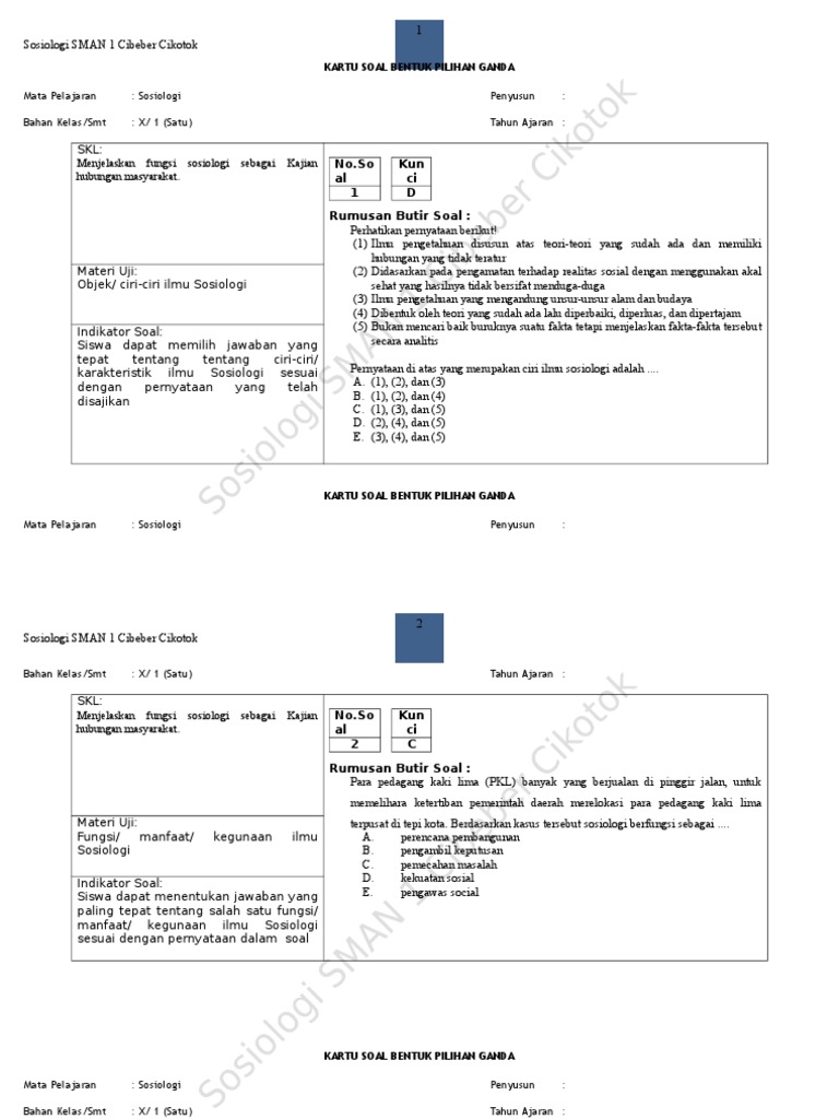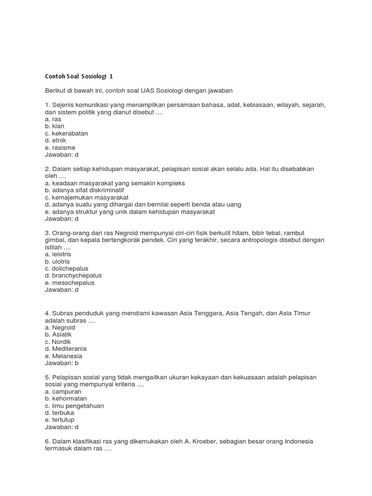 Soal Pendalaman Pilihan Ganda Materi Sosiologi Kelas Xi Bab 3 Perbedaan Kesetaraan Dan Harmoni So Sosiologi Sman 1 Cibeber Cikotok Soal Pendalaman Course Hero from www.coursehero.com Kali ini kita akan belajar soal pilihan ganda tentang perubahan sosial dan kunci jawabannya. Ketidaksamaan sosial terdiri dari ketidaksamaan sosial. Soal sosiologi tentang masalah sosial beserta jawabannya. Pilihan ganda pilihlah satu balasan yang paling tepat 1. Berikut kami sajikan 10 soal pilihan ganda tentang sistem reproduksi manusia beserta jawabannya untuk kelas 9 untuk soal nomer 2 dan 3 perhatikan gambar organ reproduksi wanita berikut. Departemen komunikasi inggris jawabannya a. Dalam hal ini diperlukan proses akomodasi dengan cara mengakui dan menghormati ragam pendapat tersebut. Tidak boleh ada diskriminasi dan hubungan yang bersifat kemitraan d.